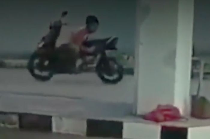 Ya, seperti rekaman video yang diunggah akun Facebook Otomotif Keren, terlihat seorang pemuda mengendarai skuter matik dengan posisi stang berada di bagian belakang.