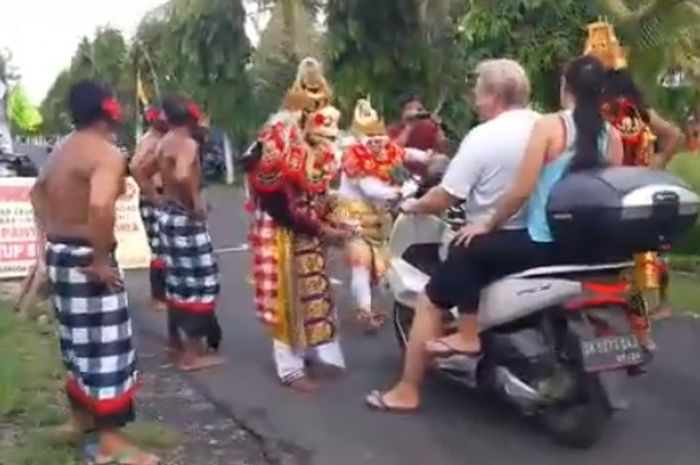 Dalam video berdurasi 1.39 detik yang diunggah akun @balebengong tersebut, terlihat dua orang bule menggunakan motor Honda PCX sedang berboncengan tidak menggunakan masker.