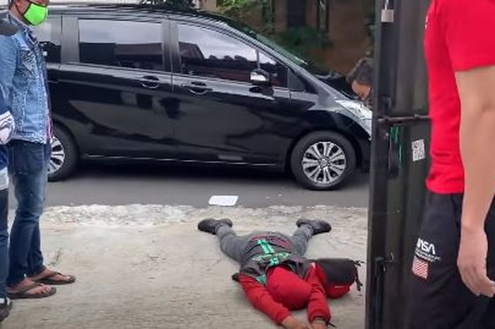 Tiba-tiba saja seorang driver ojol ambruk dan berpura-pura pingsan.