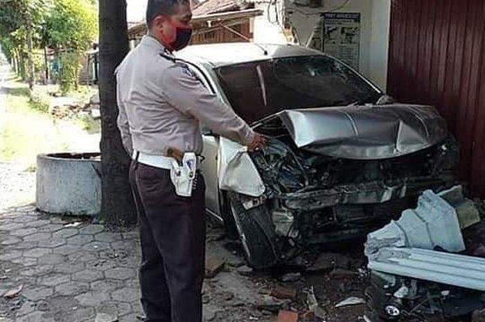 Ini disebabkan kendaraan yang ditumpanginya menyeruduk teras sebuah bangunan di tepi Jalan. Raya Madiun-Surabaya tepatnya di Dusun. Barong Ds. Kedungrejo Kec. Tanjunganom pada Minggu pagi (24/05/2020).