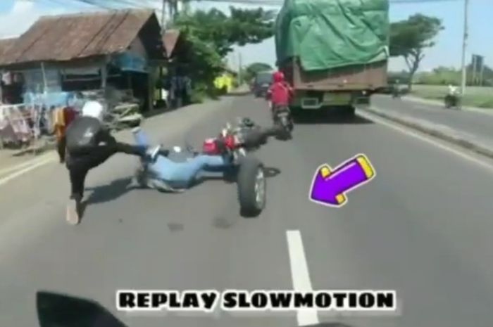 Gridmotor.id - Ngilu bro liatnya, akibat sebuah ban mobil yang jalan sendiri, 2 pemotor jatuh jungkir balik begini.