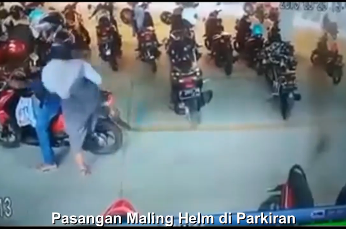 MOTOR Plus-online.com - Saking serasinya, ada pasangan kekasih yang ketahuan mencuri helm nih.
