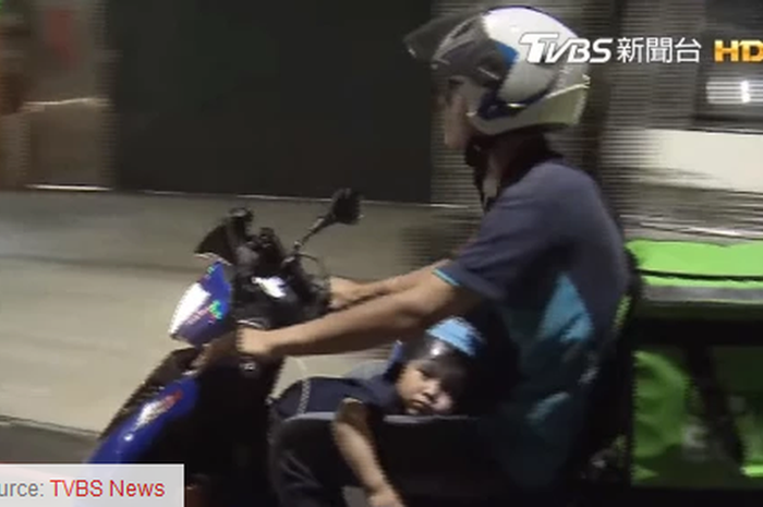 Gridmotor.id - Seorang driver ojek online (ojol) di Taiwan harus membawa anaknya bekerja mencari orderan hingga larut malam.