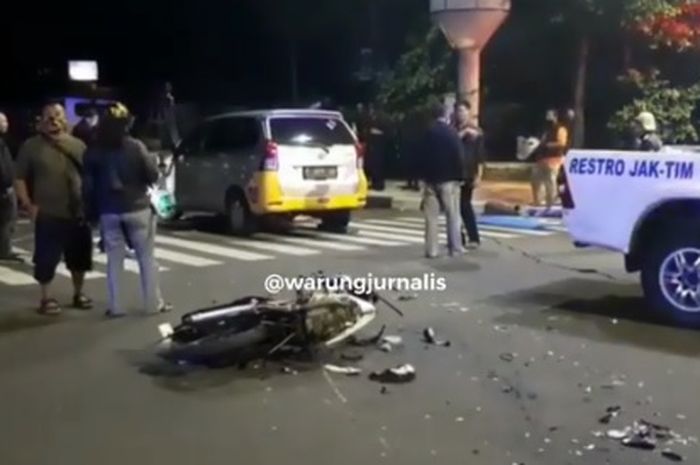 Gridmotor.id - 2 orang langsung tewas seketika, trobos lampu merah pemotor bonceng 3 hantam taksi online, diduga usai pesta miras.