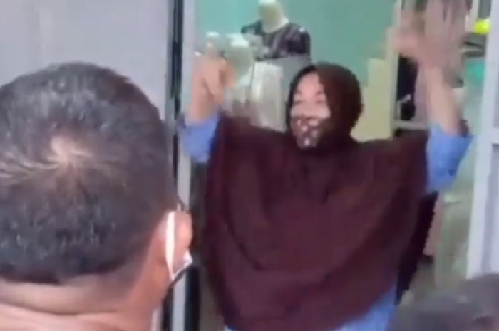 Gridmotor.id - Viral di media sosial, video seorang ibu pasien positif Covid-19 berusaha peluk polisi.
