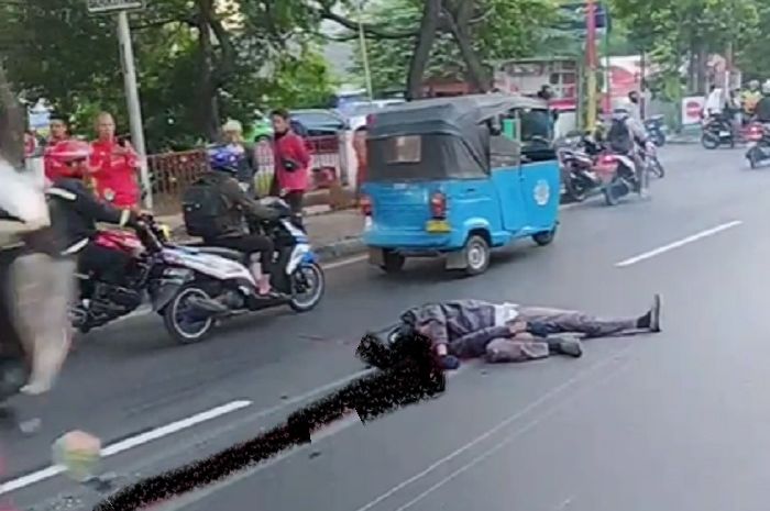 GridMotor.id - Jalanan macet total, pengendara Suzuki Satria F-150 tutup usia bersimbah darah, ban kontainer kembali makan korban.