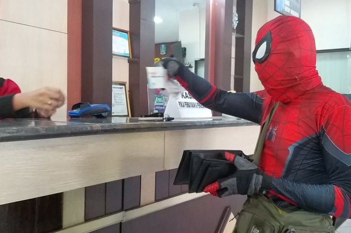 Gridmotor.id - Bikin heboh nih, pria berkostum spiderman mendadak mampir ke Samsat Madiun pada hari Rabu (3/6/2020) kemarin.