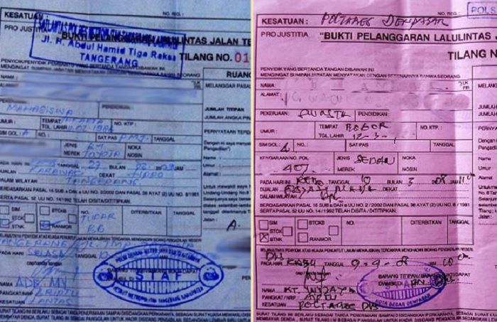 Nantinya, pelanggar diberikan slip tilang biru, yang prosesnya tanpa ke pengadilan, melainkan langsung ke bank.