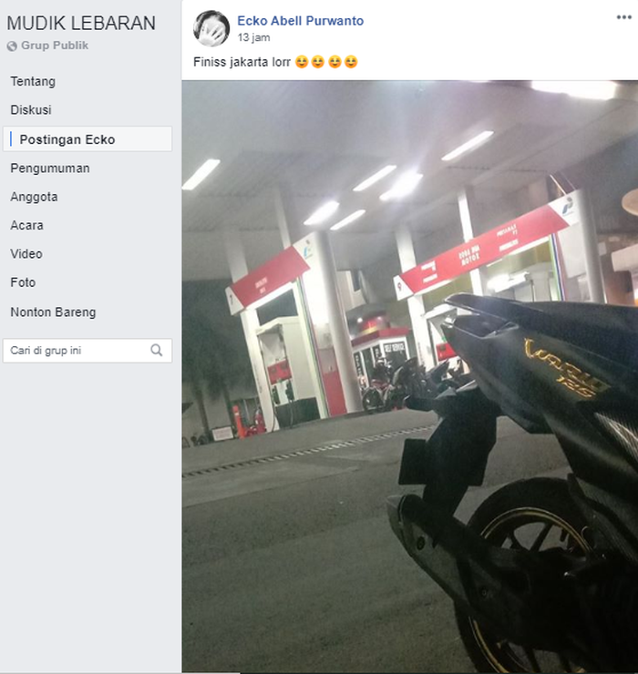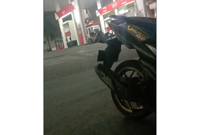 Pada foto yang ia posting, terlihat dirinya sedang mengistirahatkan motor Vario-nya di sebuah pom bensin Pertamina.