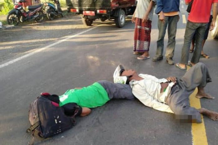 Terlihat korban sampai terkapar di jalan.
