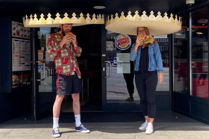 Salah satu merk makanan cepat saji di Jerman Burger King menciptakan sebuah topi khusus untuk para pelanggannya agar bisa menerapkan physical distancing.