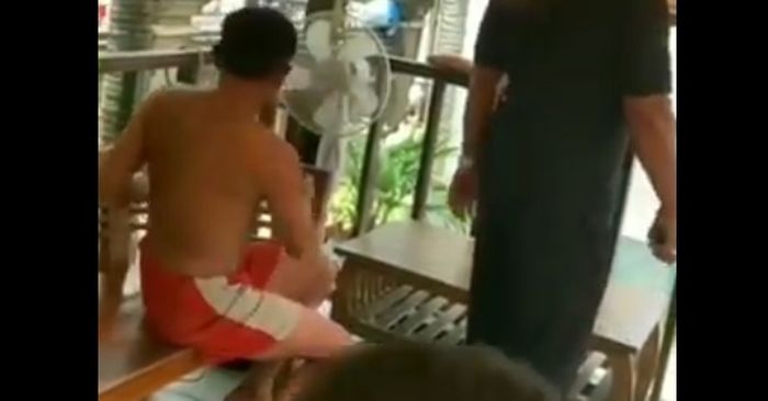 Pelaku yang hanya menggunakan celana pendek ini ternyata punya jurus ampuh.