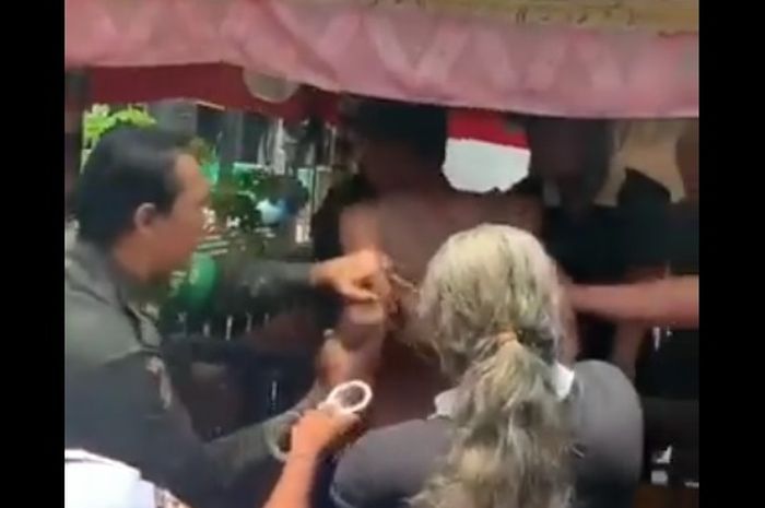 Video tergambar seorang pemuda yang sedang diamankan petugas dan warga.