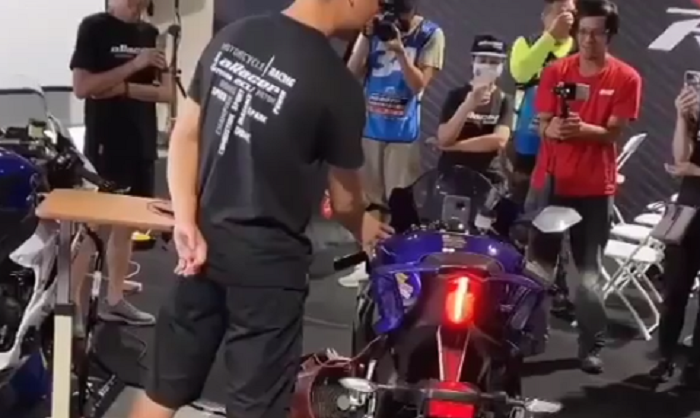 Pada video tersebut, terlihat Yamaha R6 sedang dipersiapkan pemiliknya.