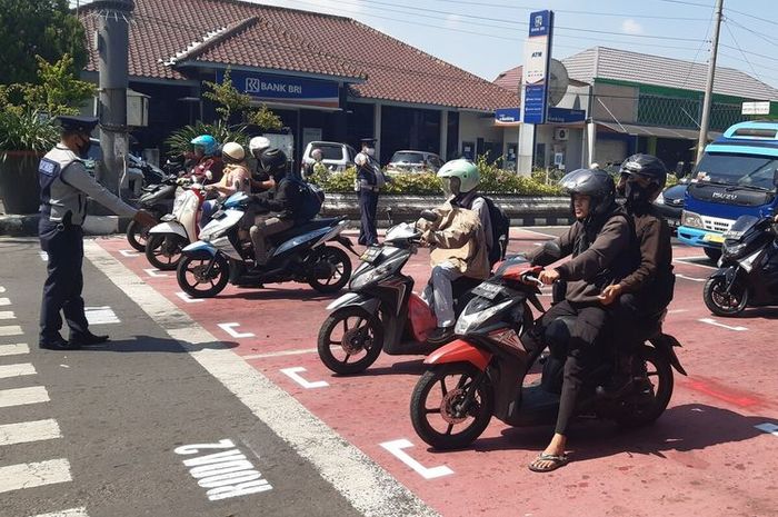 Gridmotor.id - Bukan cuma lampu merah daerah Tuban, Jawa Timur, lampu merah di Sukoharjo, Jawa Tengah, pemotor juga baris seperti starting grid MotoGP.