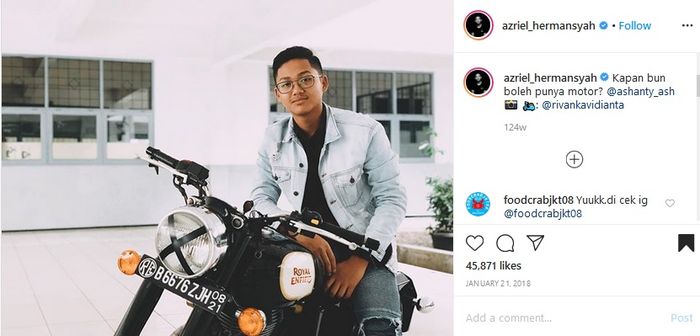 "Kapan bun boleh punya motor? @ashanty_ash," tulisnya untuk Asyanti.
