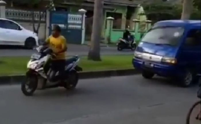 Sebuah mobil yang mogok justru malah di tarik motor matic keluaran lawas.