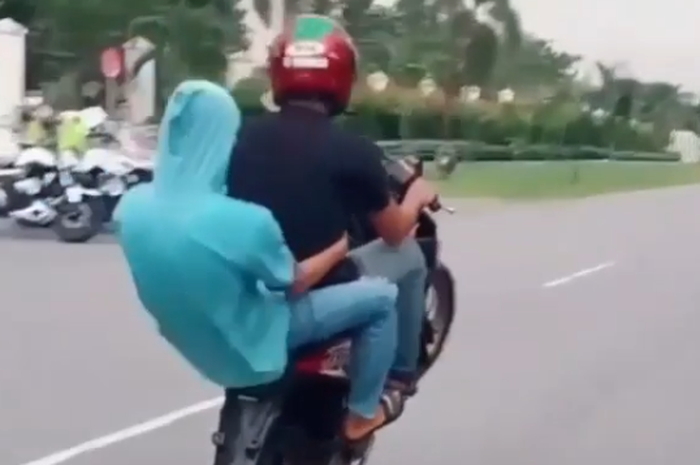Pada video awalnya terlihat seorang pemotor Honda BeAT yang sedang berboncengan, namun sang boncenger tidak menggunakan helm.