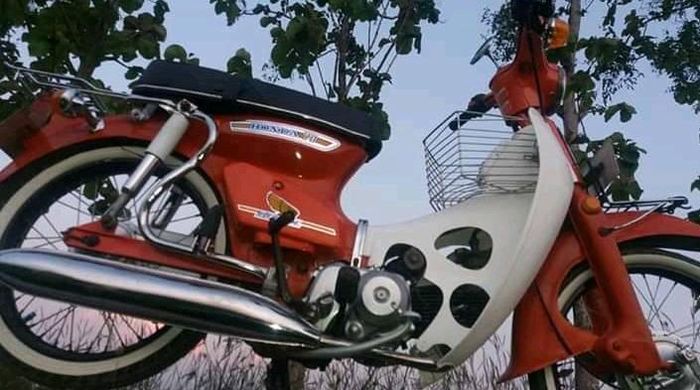 Aman AR menjual motor Honda C70 Pitung dengan warna merah-putih.