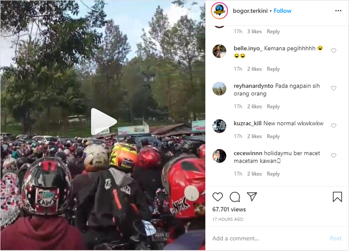 Salah satunya diunggah oleh akun Instagram @bogor.terkini pada Minggu (14/6/2020).