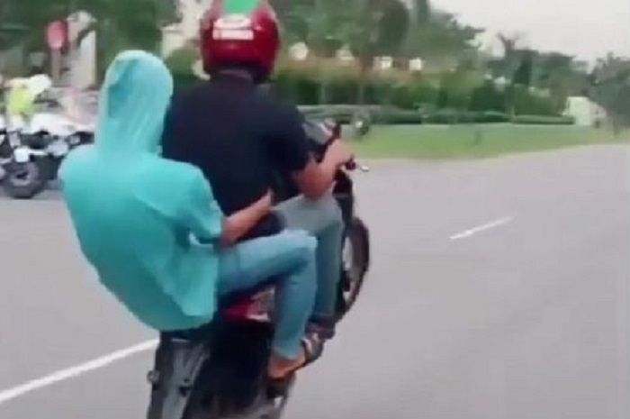 Aksi dua remaja yang mengendarai motor ini jangan sampai ditiru bro, karena bikin rugi diri sendiri.