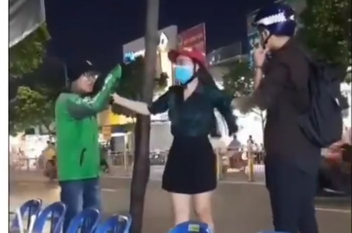 Kekasih ojol tersebut mencoba merendam amarah ojol tersebut.