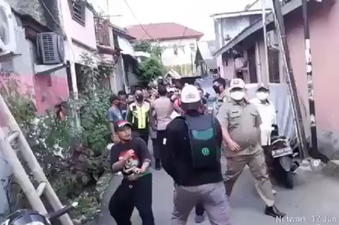 Keributan tak terhindarkan antara penghuni kontrakan dan kerumunan warga lantaran soal parkir motor.