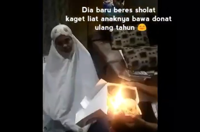 Driver tersebut pun langsung memberikan kejutan dengan membawa donat kesukaan sang ibu, lengkap dengan lilin ulang tahunnya.