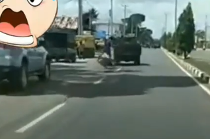 Gridmotor.id - Seorang pemotor diduga langsung mengalami keringat dingin, karena hampir terlibat kecelakaan fatal.