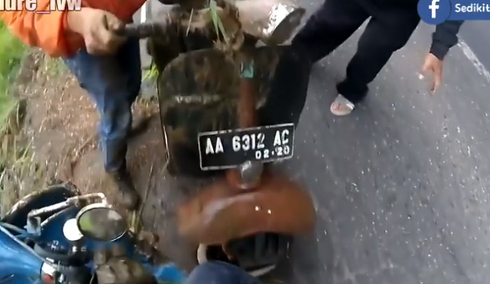 Sementara Vespa milik Andre hanya lecet di area tepong akibat goresan lumpur.