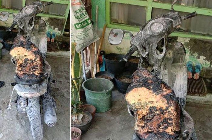 Motor matic terbakar setelah servis ini akibat korsleting kelistrikan pada Jumat (19/6/2020).