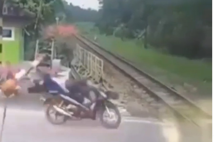 Karena bisa saja datang kereta yang menabrak pemotor tersebut.