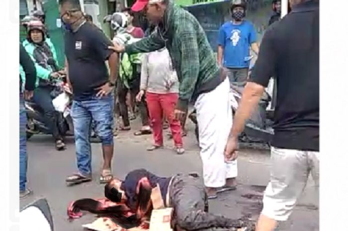 Pemotor yang kebetulan melintas langsung merinding melihat korban bersimbah darah terkapar di aspal.