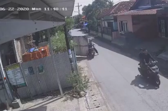 Pada video yang merupakan rekaman CCTV itu, terlihat ada seorang pemotor yang sedang melaju di sebuah perumahan.