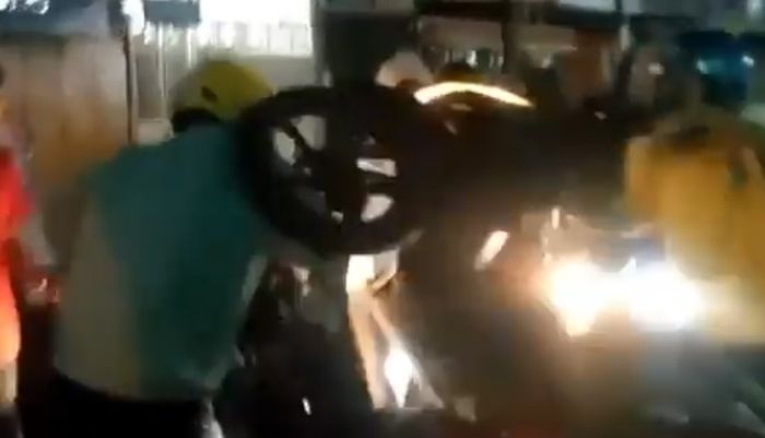 Melihat situasi tidak lagi berada dipihaknya, pemuda berhelm kuning memutuskan untuk kabur.