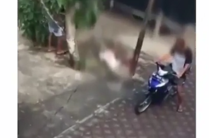Pada video tersebut terlihat beberapa orang pelaku sedang memukuli seekor anjing.