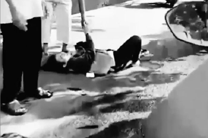 Dikutip GridMotor dari akun Instagram @info_ciledug, seorang pemotor terkapar enggak berdaya di aspal.