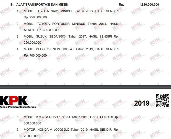 Dengan harta kekayaan segitu, ia hanya memiliki satu motor saja.