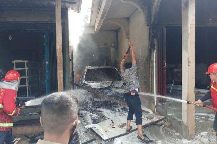 GridMotor.id - Terdengar suara jeritan, tangan pemilik kios Pertamini tersambar api, satu unit mobil ludes terbakar.