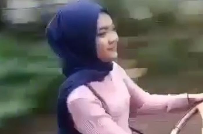 Bagaimana tidak, wanita berhijab tersebut mengendarai motor yang tak biasanya.