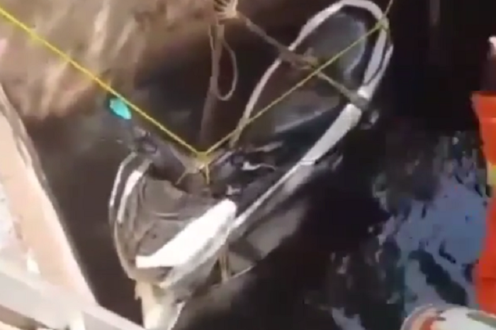 Proses evakuasi Yamaha NMAX direkam oleh warga di lokasi.