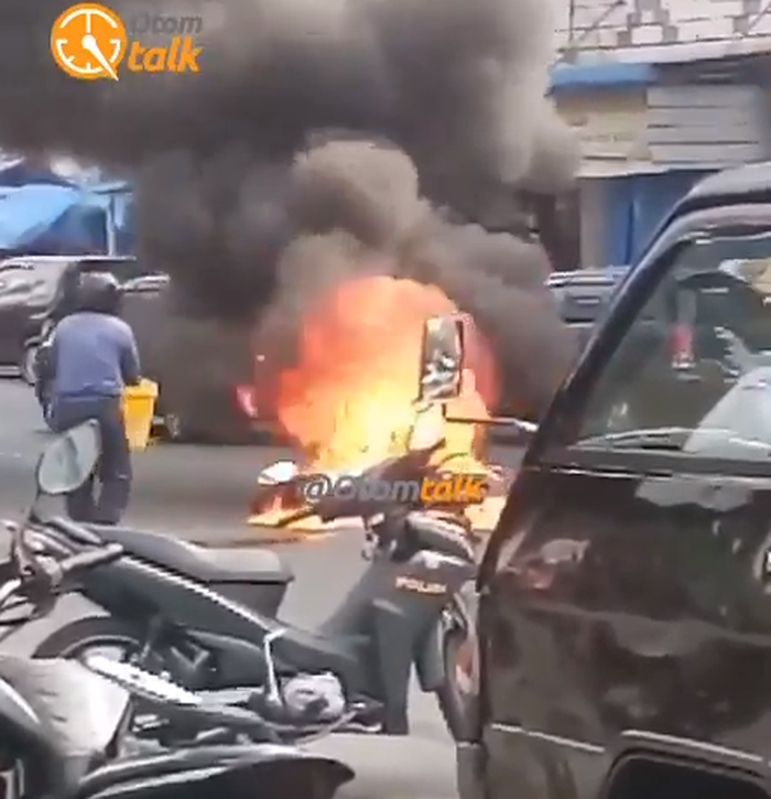 Dapat dilihat pada video, terlihat motor hangus terbakar dan menyisakan rangkanya saja.