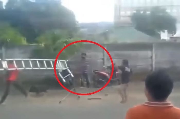 Dalam video tersebut, memperlihatkan seorang pria yang diduga maling motor dipukuli oleh massa yang mengepungnya.
