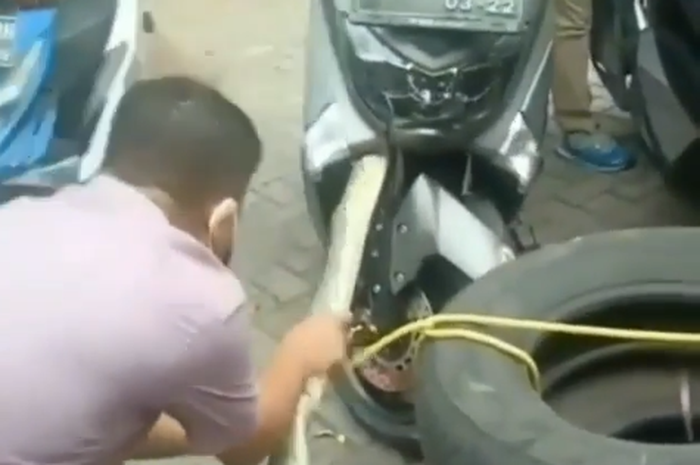 Gridmotor.id - Viral nih, video detik-detik warga sedang menarik ular dari body motor Yamaha NMAX.