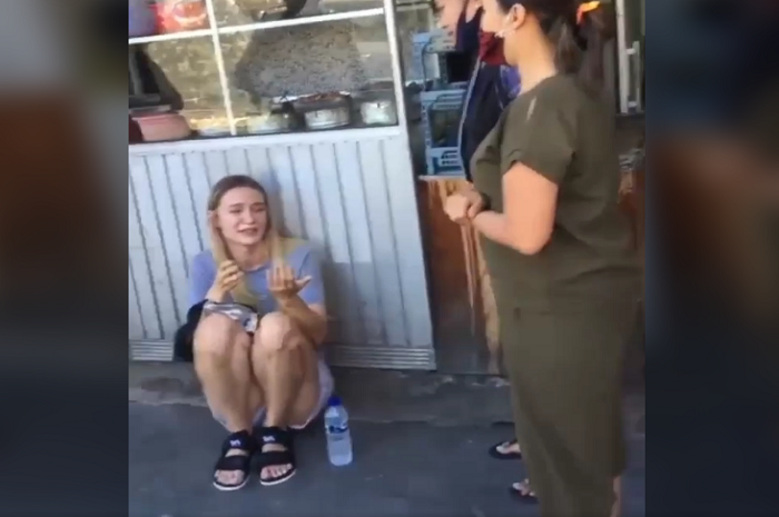 Bule cantik ini sampai meminta tolong warga sekitar.