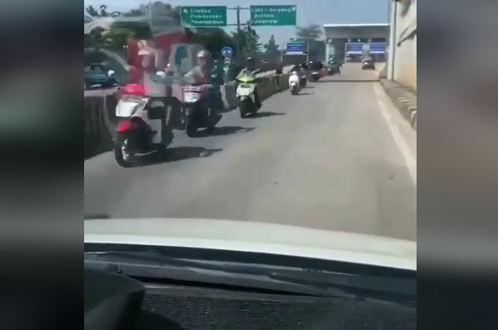Bukannya sadar, malah makin banyak pengendara motor lawan arah.