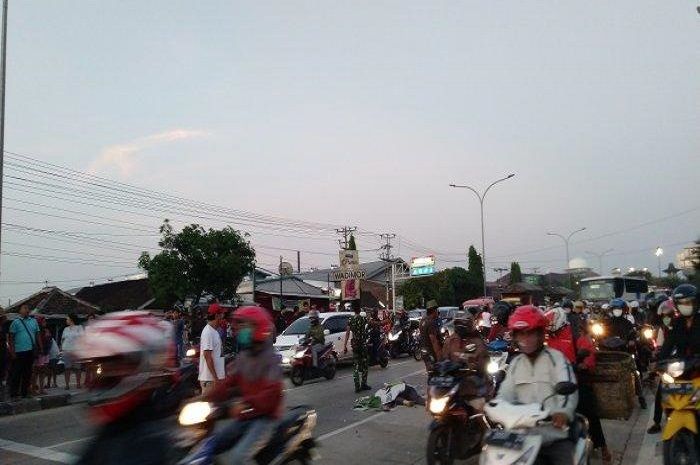 Lokasi kecelakaan motor ini berada di persimpangan rambu lalu lintas Mangkang Kota Semarang, Jawa Tengah.