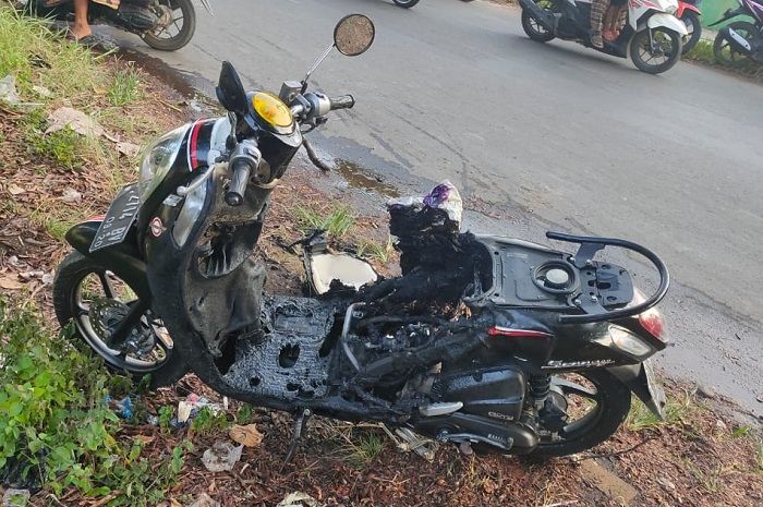 Gridmotor.id - Ngeri bro, motor matic Honda Scoopy hangus terbakar dan kondisinya enggak karuan.