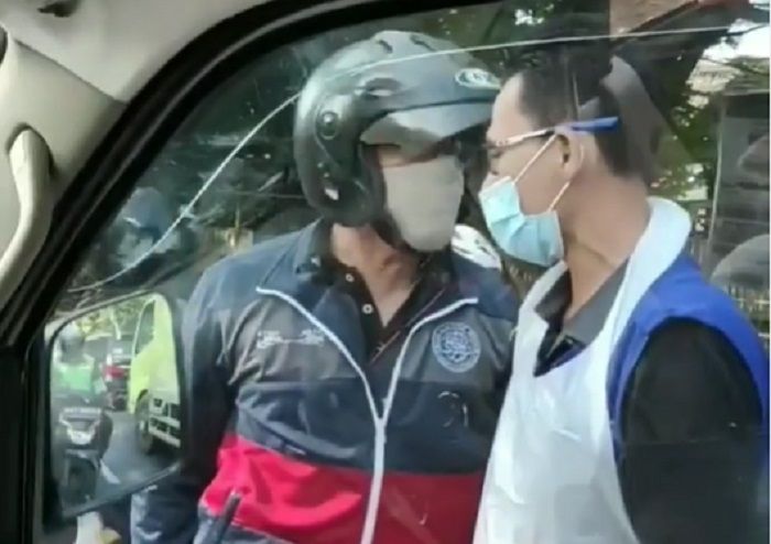 Seorang pengendara motor mendadak ajak ribut sopir ambulans di tengah jalan.