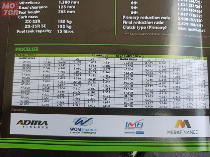 Berikut skema cicilan Kawasaki Ninja ZX-25R 4 silinder.